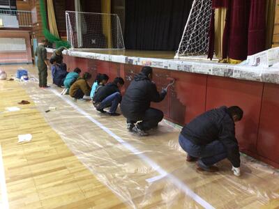 劇的ビフォーアフター 投稿: 新十津川中学校 (08:10) 昨日は夜にPTAおやじの会によるペンキ塗りの作業もありました。 体育館のステージ下の壁のペンキ塗りの作業をしていただきました。 見違えるほど、きれいになりました。 遅い時間にもかかわらず作業にきてくださった皆様、本当にありがとうございました。 Before After Tweet -
