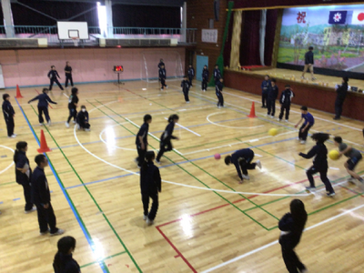 ドッジボールでは、先生も混じって行っていました。